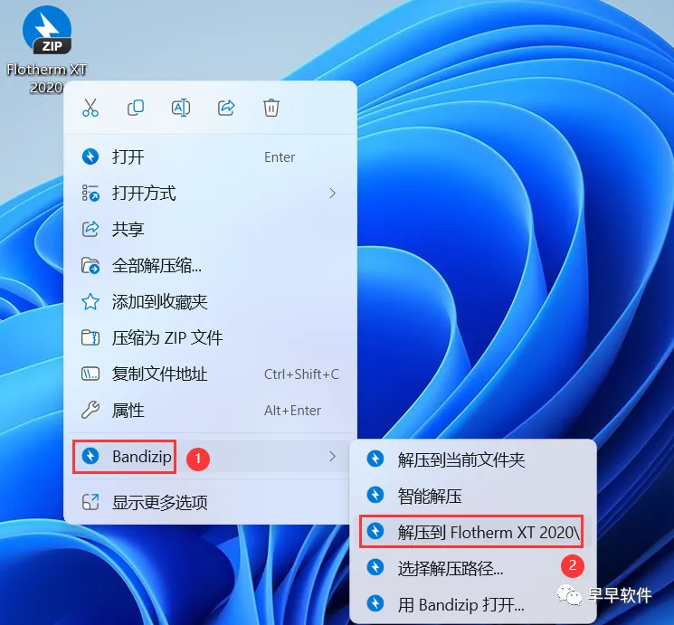 1、下载Flotherm XT 2020软件安装包到电脑上,右键选择【解压到Flotherm XT 2020\】