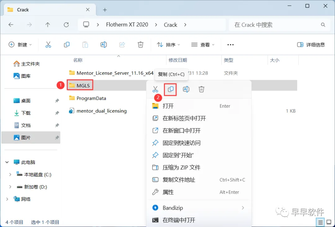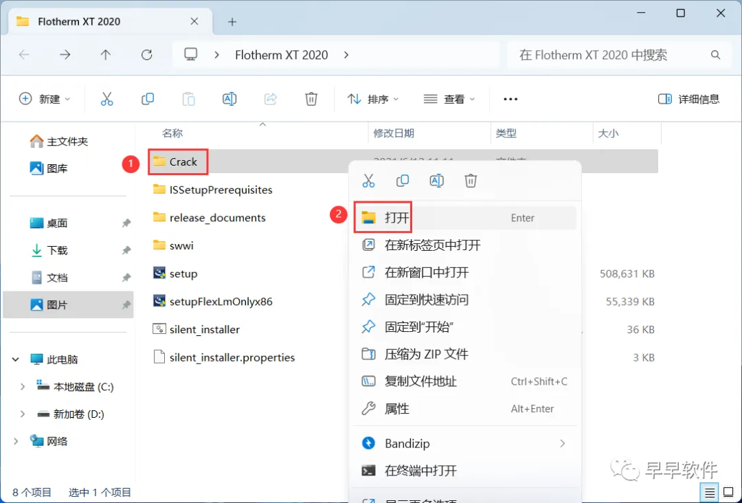 13、回到Flotherm XT 2020文件夹,找到【Crack】文件夹,右键【打开】它