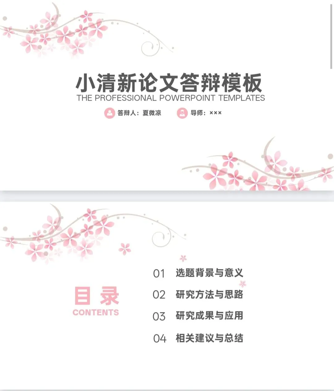 本文分享内容(小清新论文答辩模板)