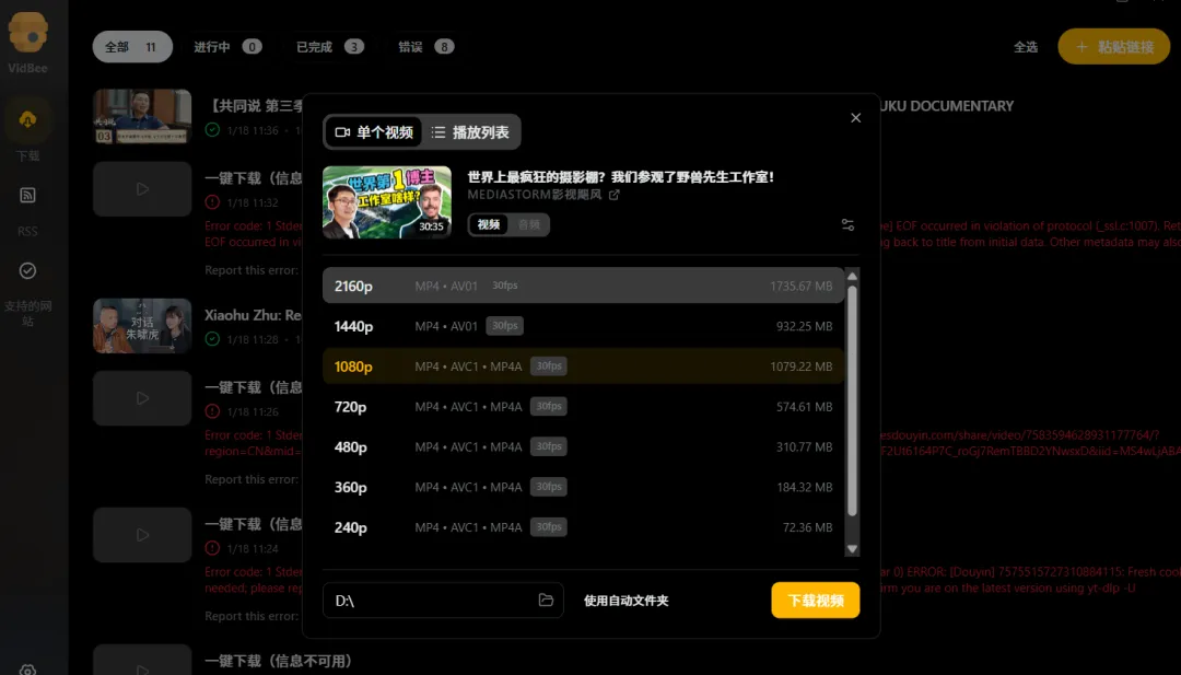 是很难搞的视频平台之一,这个工具可以轻松下载!还可以选择下载像素。