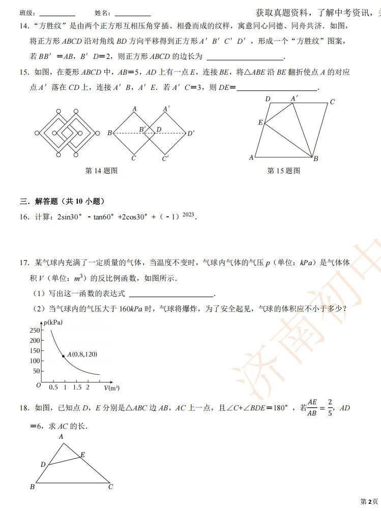 一模时间定了!24年济南初三一模真题+答案解析免费领取!