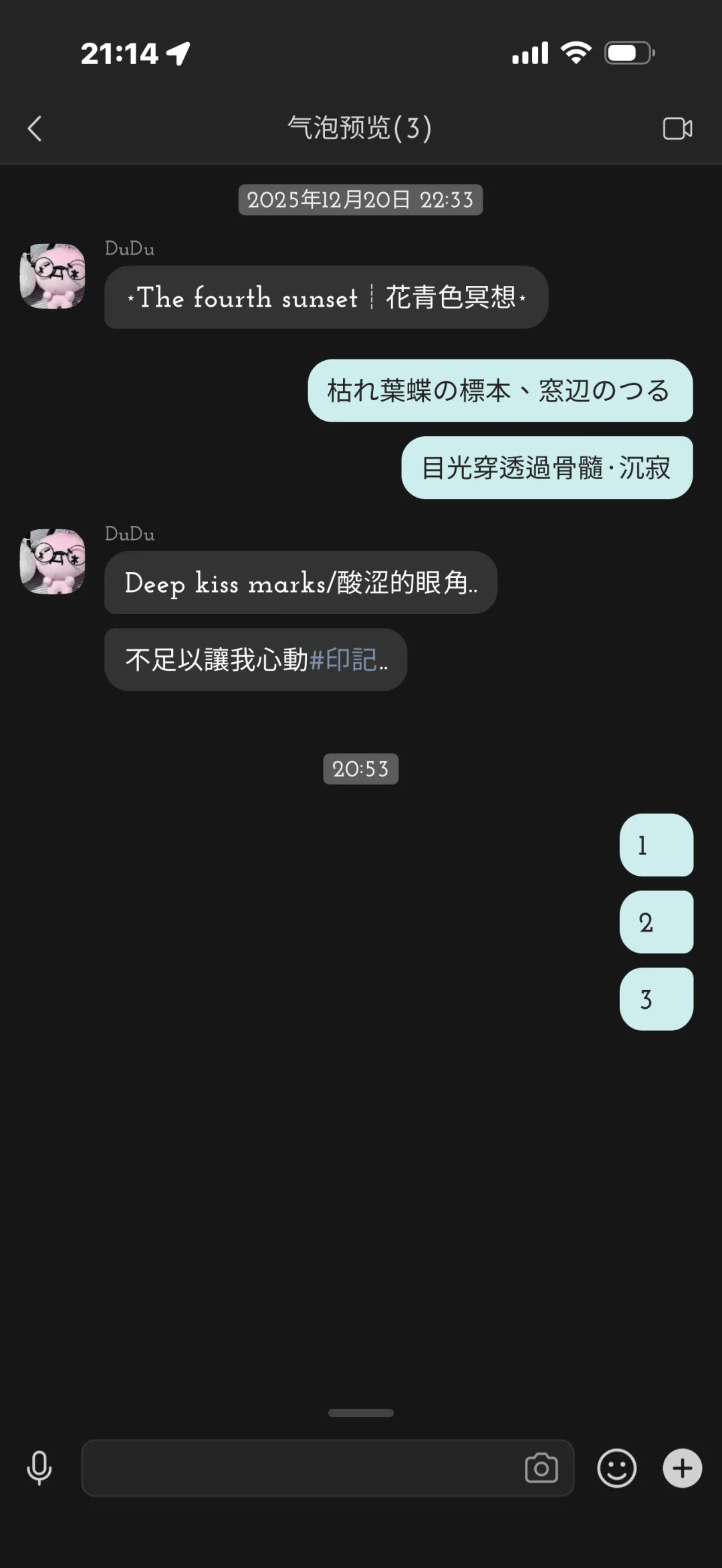 这次给大家带来一部分气泡,可搭配插件使用,使聊天页面焕然一新~