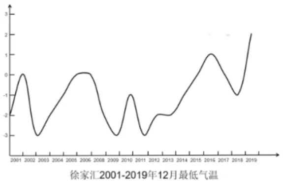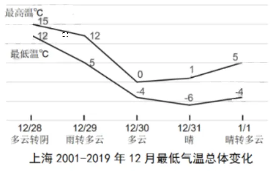 25.概括上海2001-2019年12月最低气温总体变化趋势,并说明理由。(4分)