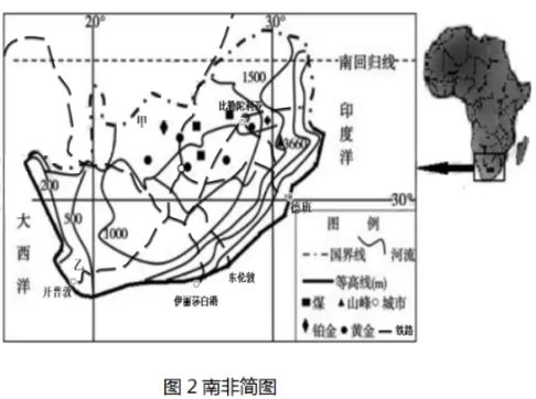 (三)南非是"一带一路"上的重要国家。近年来,南非在致力于发展经济的同时,也重视环境保护。读图文资料,回答问题。(20 分)