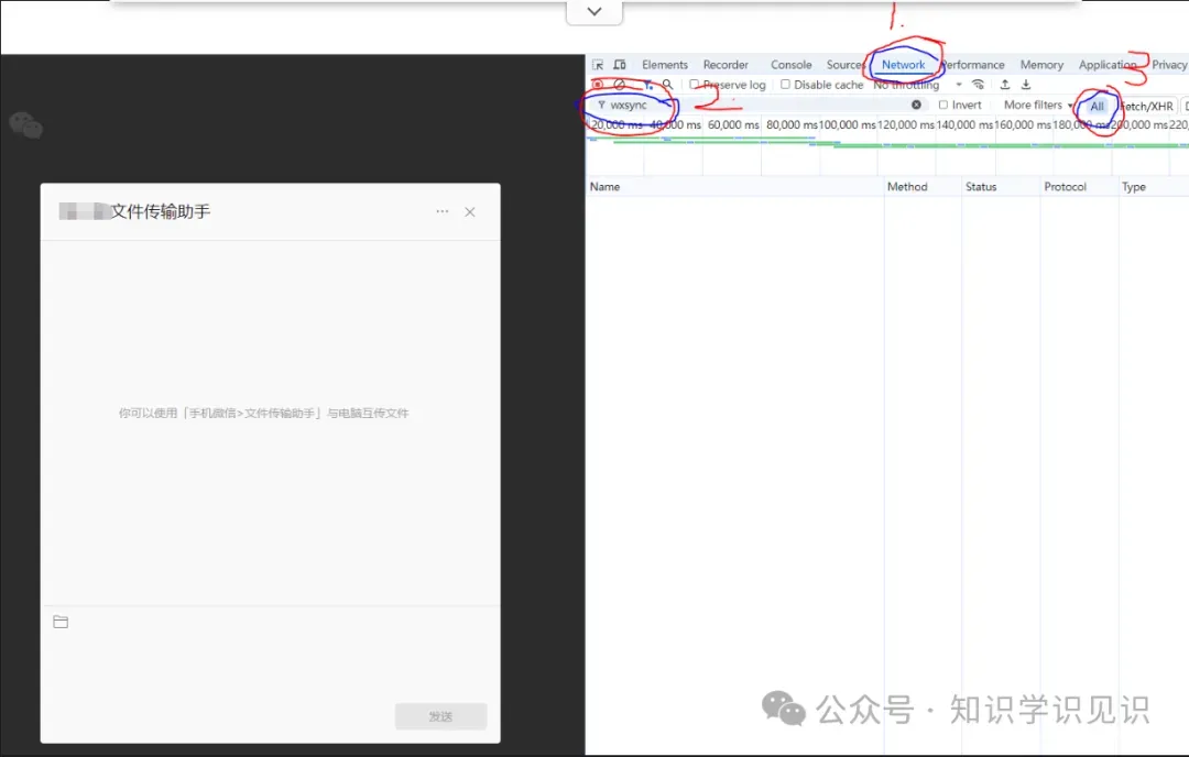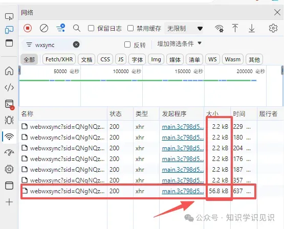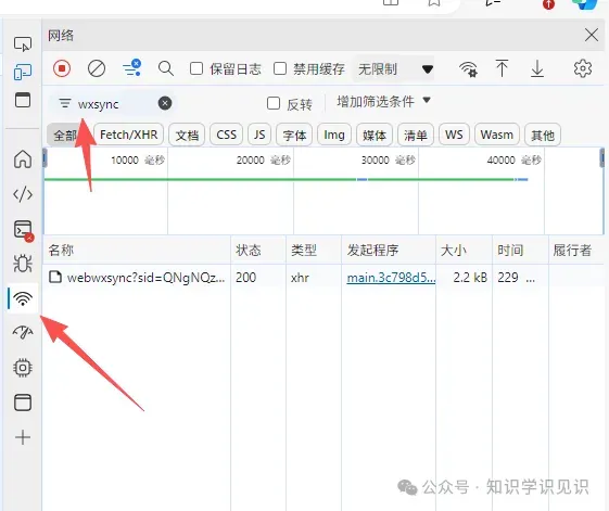 第二步:扫码登录文件传输助手,按F12或右击空白处点最下面的检查,打开调试,选中网络(英文是 Network) 面板,在过滤框输入 wxsync