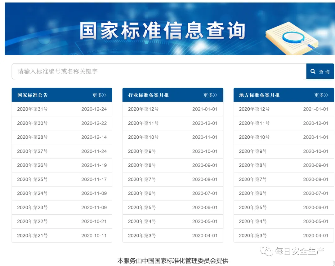3.国家标准、地方标准、行业标准查询(微信订阅:每日安全生产)