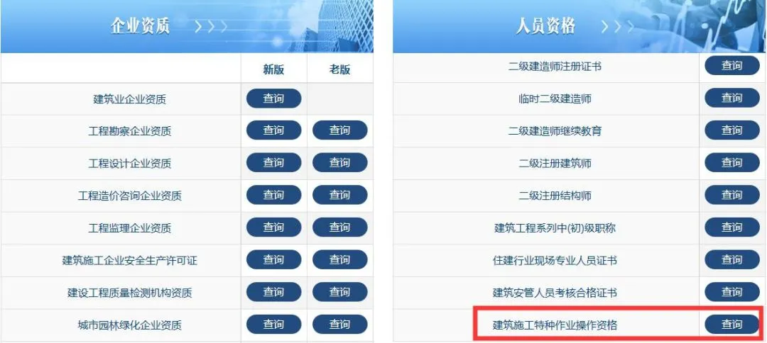 全国各省市建筑施工特种作业人员资格操作证书查询平台进行精心整理,各位大哥需查询建筑施工特种作业人员资格书的可在上方网站中查询,查询有助于施工企业对建筑施工特种作业人员资格证书的辨识能力,加强项目管理;如查询不到可前往当地发证机关进一步核实,如证件为假证可在12350投诉平台进行举报。