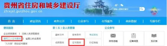 贵州省住房和城乡建设厅官方网站http://zfcxjst.guizhou.gov.cn, 依次点击 “建筑工人证书查询”→“特种人员”进行查询;或者直接登录http://42.123.101.210:8088/gzzhxt/进行查询。