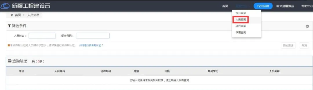 新疆维吾尔自治区住房和城乡建设厅官方网站http://www.xjjs.gov.cn,依次点击“工程云平台”→“查询中心”→“人员查询”进行查询;或者直接登录http://jsy.xjjs.gov.cn/dataservice/query/center/staffList 进行查询。