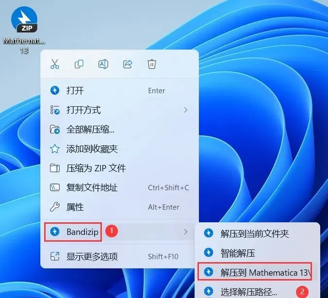 1、下载Mathematica 13软件安装包到电脑上,右键选择【解压到Mathematica 13\】