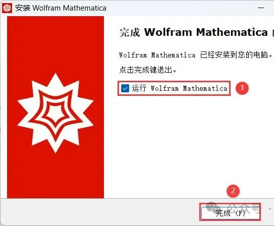 11、勾选【运行 Wolfram Mathematica】,再点击【完成】