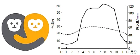 2021年5月7日至10日首届中国国际消费品博览会在海口举办,展会上亮相的吉祥物“元宵”(下左图)的原型来自海南特有物种海南长臂猿。该物种在海南曾广泛分布,后濒于灭绝,1980年建立霸王岭自然保护区后,其数量已有较大增长。海南长臂猿旱季多在海拔1000米以上,雨季常到低海拔地区的树冠层活动。下右图为霸王岭的气候资料。据此完成下面小题。