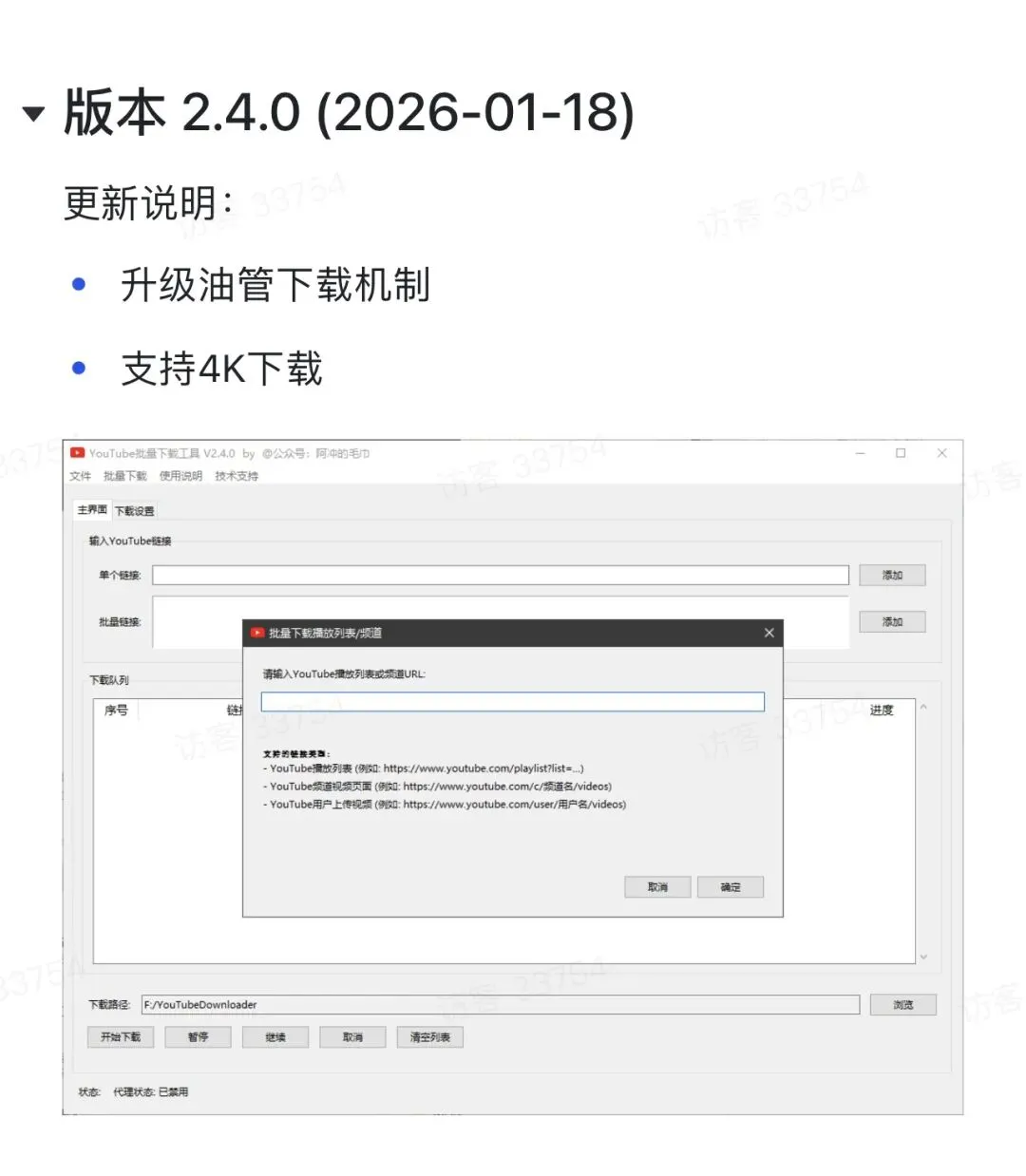 股东们,ytb下载器更新到 2.4.0 版本了,老版本即将失效,请尽快下载新版使用⬇️ ⬇️ ⬇️ 软件链接和验证码在文末