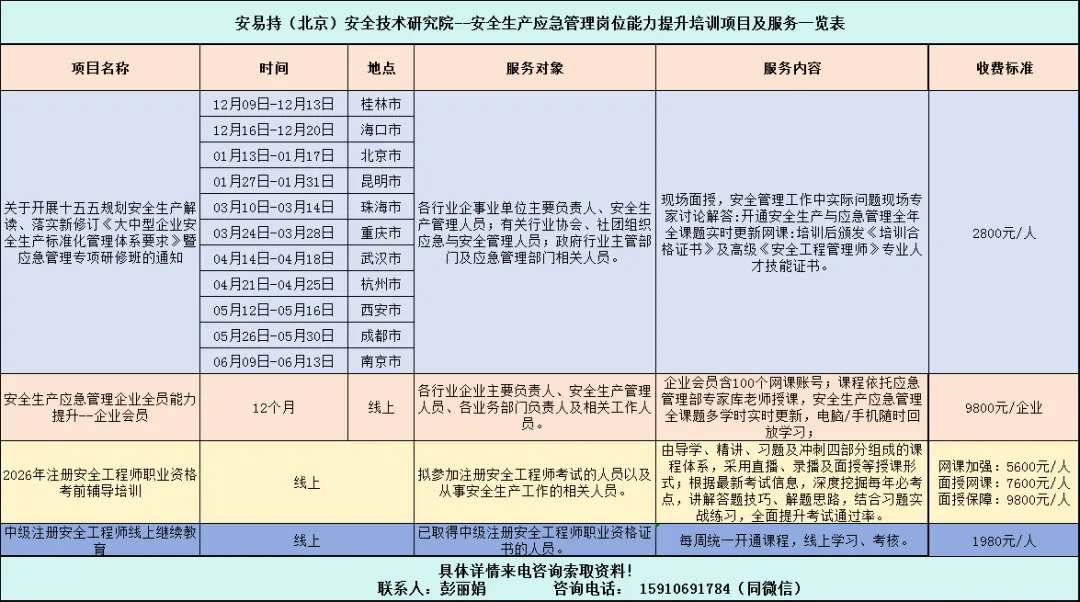 关于开展十五五规划安全生产解读、落实新修订《大中型企业安全生产标准化管理体系要求》暨应急管理专项研修班的通知