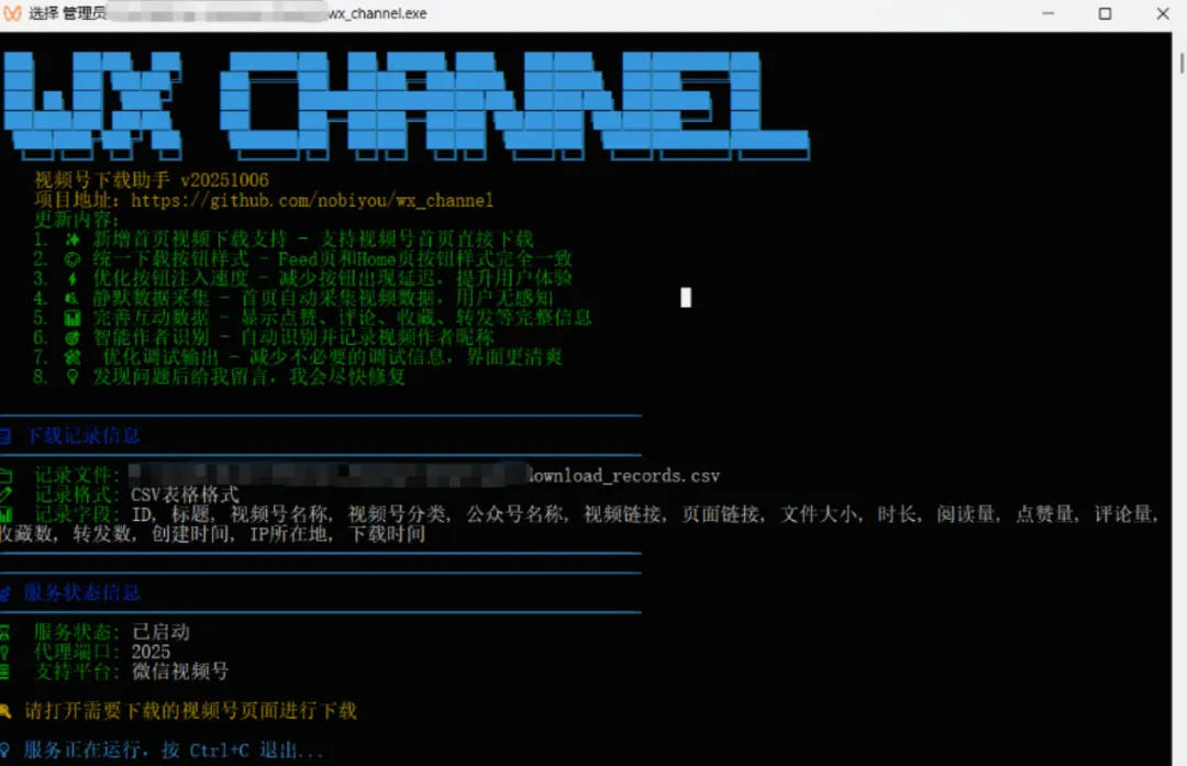 启动程序: 解压后双击 wx_channel.exe 启动。