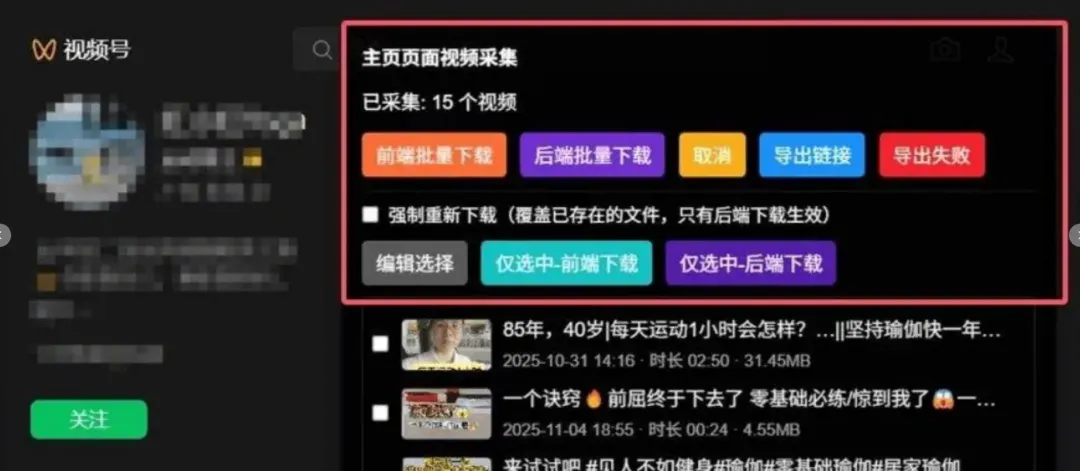 开始下载: 打开微信视频号页面,页面会自动注入下载按钮,点击按钮即可下载。