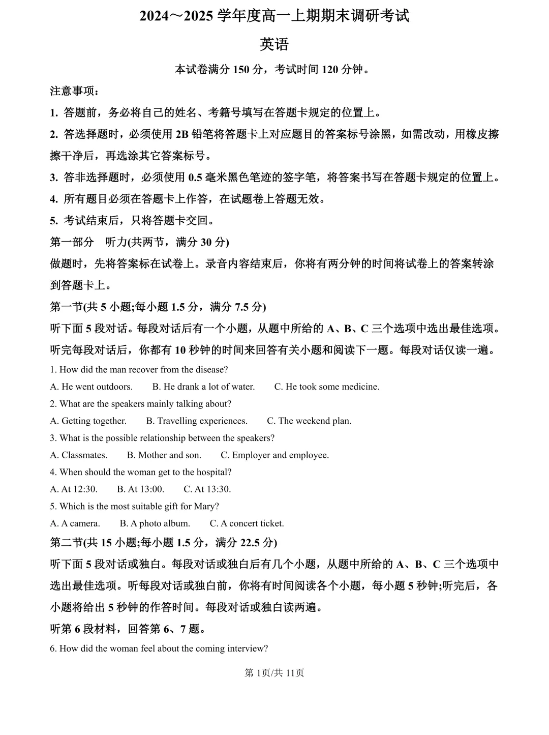 马上就是高一期末考试了,为帮助各位同学高效备考,杨老师精选了2024、2025两年的高一期末调研考试(全科)试卷及参考答案!各位家长可以下载让孩子练习一下。