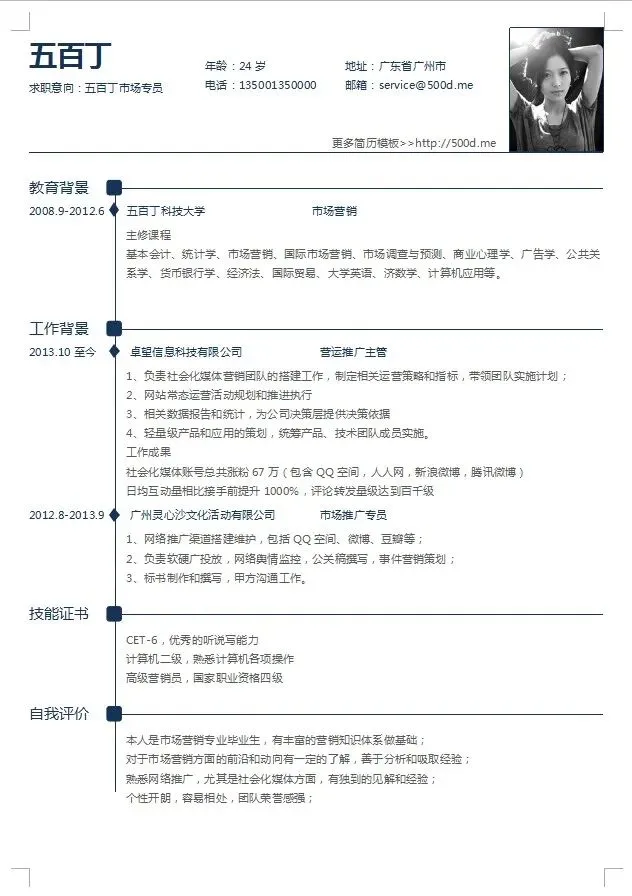 本文内容分享【精品简历模板】