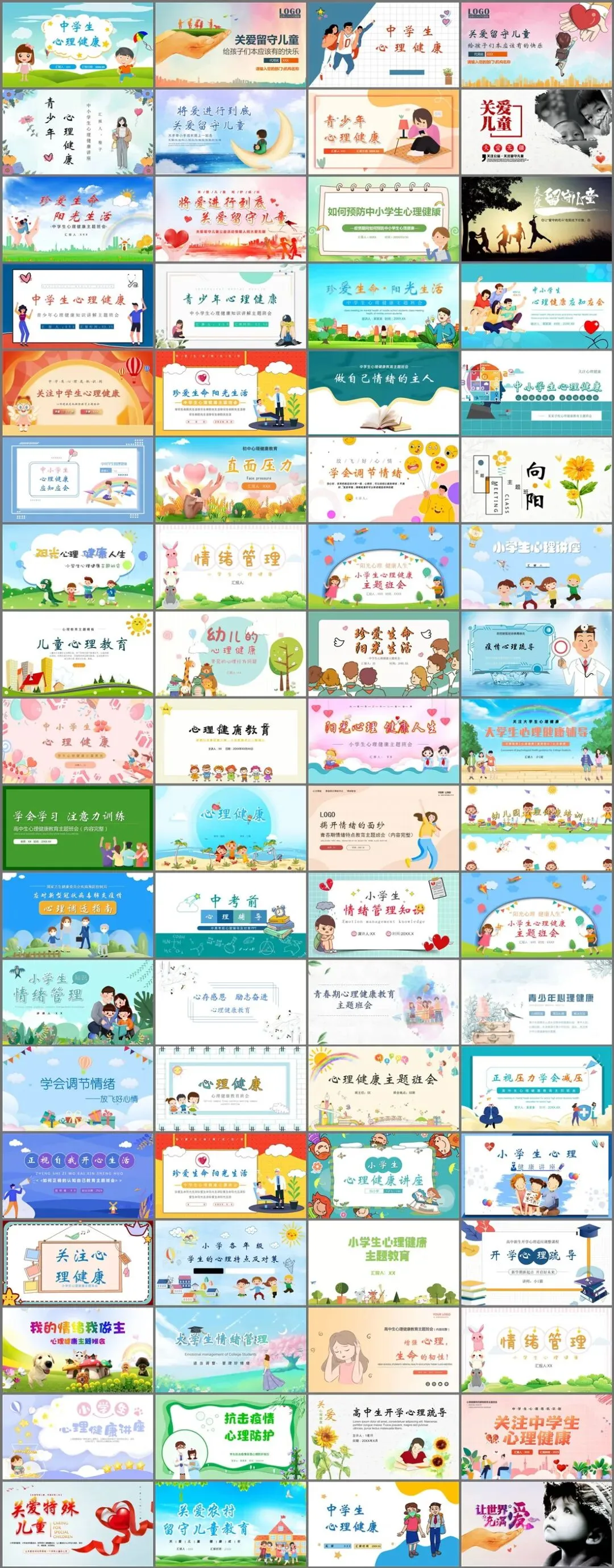 包括了:中学生心理健康PPT、关爱留守儿童PPT、中学生心理健康PPT、青少年心理健康PPT、做自己情绪的主人PPT、直面压力PPT、学会调节情绪PPT、情绪管理PPT、小学生心理讲座PPT、开学心理疏导PPT、关爱特殊儿童PPT、让世界充满爱PPT等。