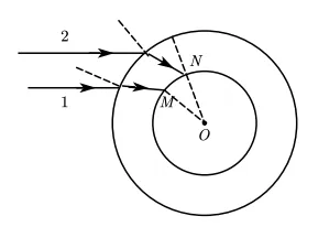 D. 若光线2在N处发生全反射,光线1在M处一定发生全反射