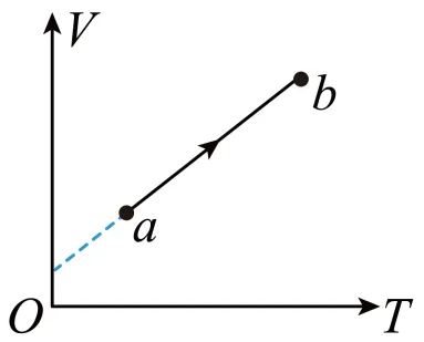 6. 一定质量的理想气体从状态a变化到状态b,其体积V和热力学温度T变化图像如图所示,此过程中该系统()