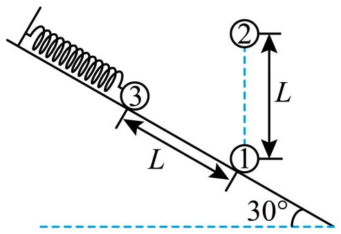 的球2,斜面上距a点L处的b点有质量为m的带电球3,球3与一端固定的绝缘轻质弹簧相连并在b点处于静止状态。此时弹簧的压缩量为