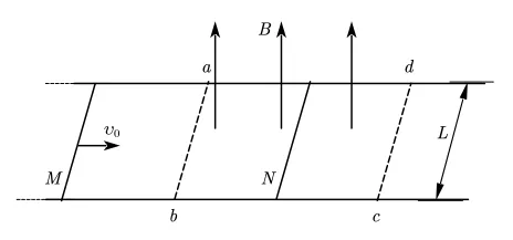 区域有匀强磁场,磁感应强度大小为B,方向竖直向上。初始时刻,磁场外的细金属杆M以初速度