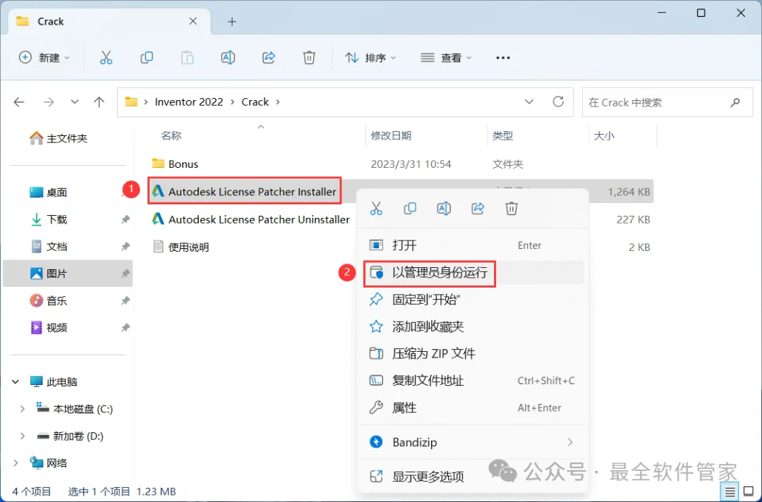 10、回到Inventor 2022文件夹,找到【Crack】文件夹,右键【打开】它