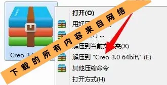1.选中下载好的压缩包,然后鼠标右击解压到Creo 3.0 64bit