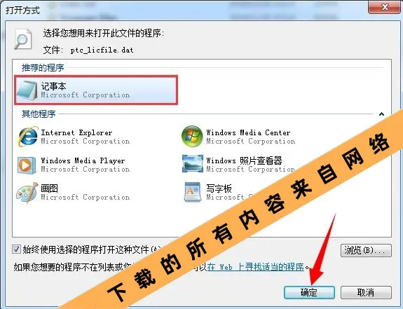 5.选择“记事本”后,点击确定。