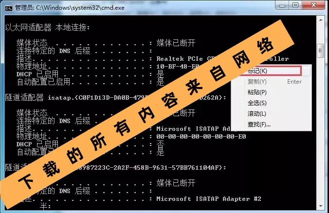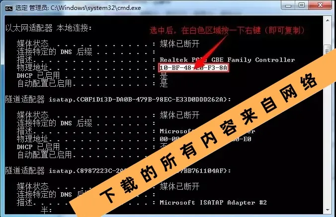 10.选中如下图所示的物理地址,鼠标在白色区域按“一下”右键(即可复制)。