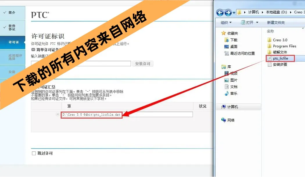 22.在解压出的文件夹中找到“ptc_licfile”文件,直接拖拽至如图所示位置。