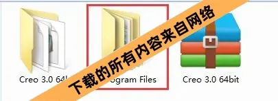 2.解压完成后,进入解压得到的“Creo 3.0 64bit”文件夹并打开它;在该文件夹内找到名为“Program Files”的文件夹,使用鼠标右键点击该文件夹,在弹出的菜单中选择“复制”即可。