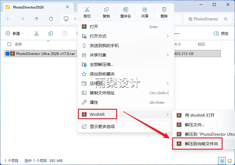 1.右键下载的压缩包,并【解压到当前文件夹】