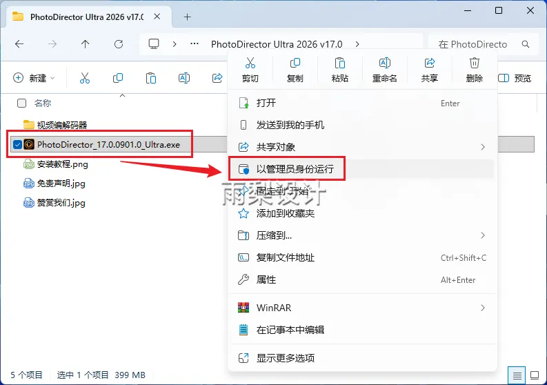 2.右键【PhotoDirector...】选择【以管理员身份运行】