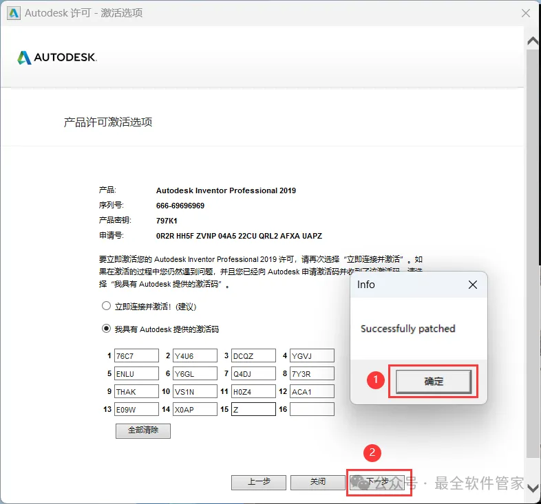 21、打开软件界面,将软件的【申请号】填入到程序的【Requset】内,再点击【Generate】,将程序的【Activation】填入到软件的【激活码】内,再点击【Patch】