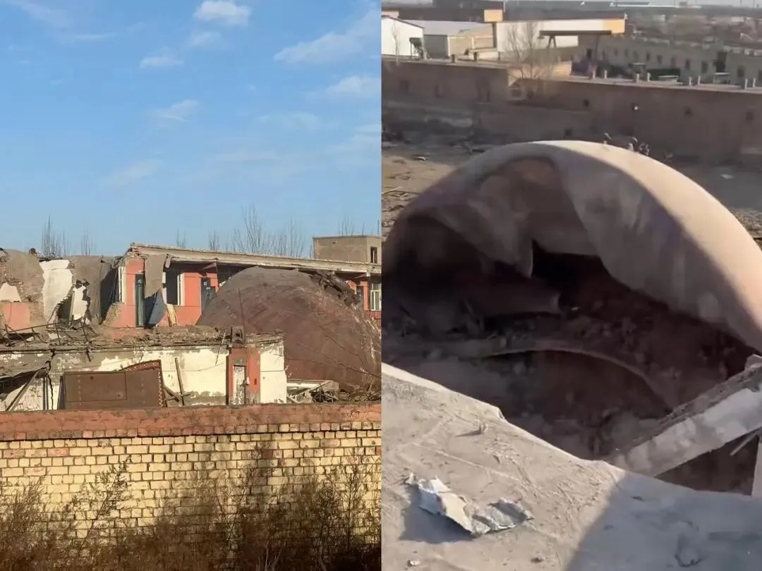 有村民告诉记者,经他了解,砸塌李先生宾馆隔壁民房的大铁罐是爆炸后飞过来的一个东西。他暂不清楚这是什么设备,“直径有六七米,把地面砸出了坑。”此处民房是外来户盖的,没有人居住。事发后,现场已封锁并安排人员值守,等待相关部门调查处理。