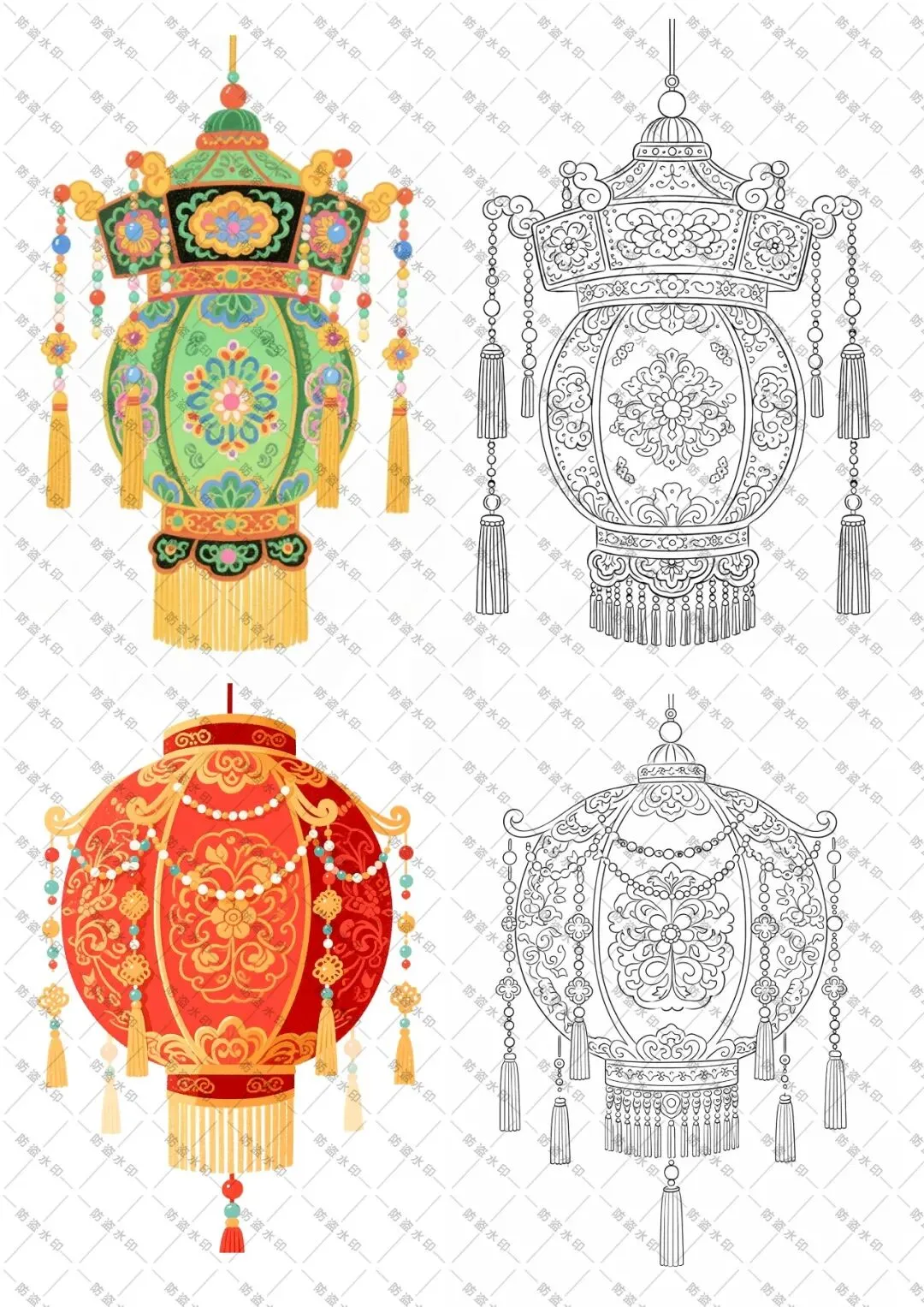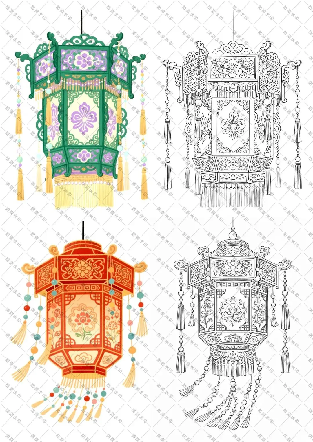 >免费资料|宫灯造型图案,高清线稿参考图下载