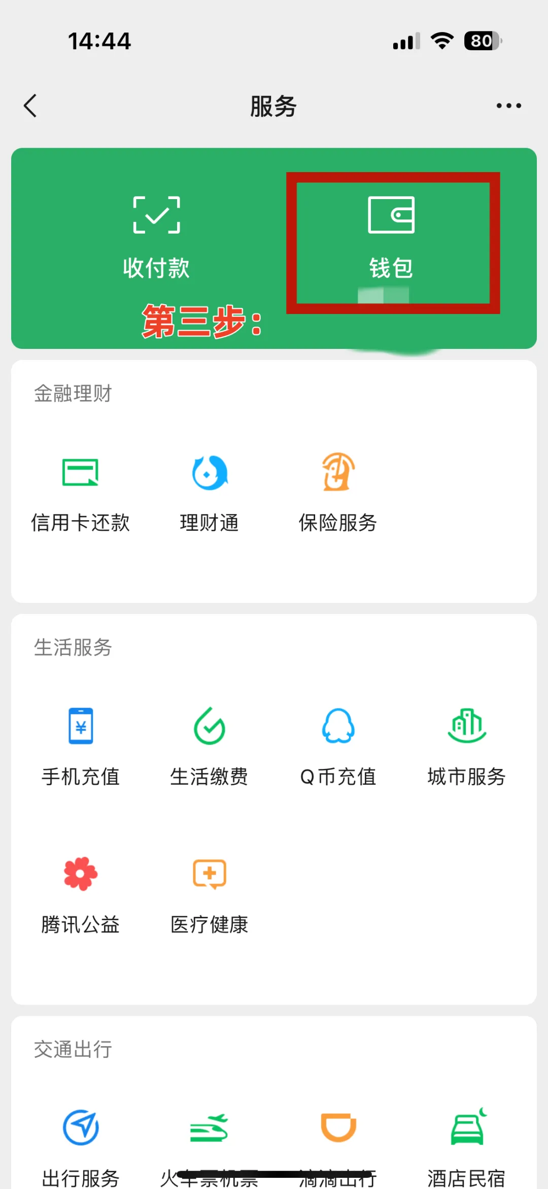 2、在“服务”页面点击“钱包”,可进入“钱包”页面