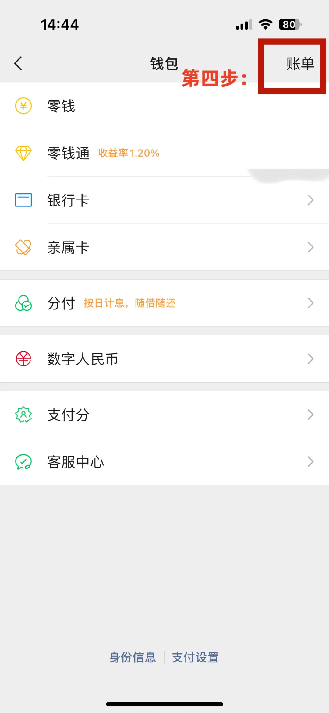3、在“钱包”页面点击“账单”,即可查看所有账单