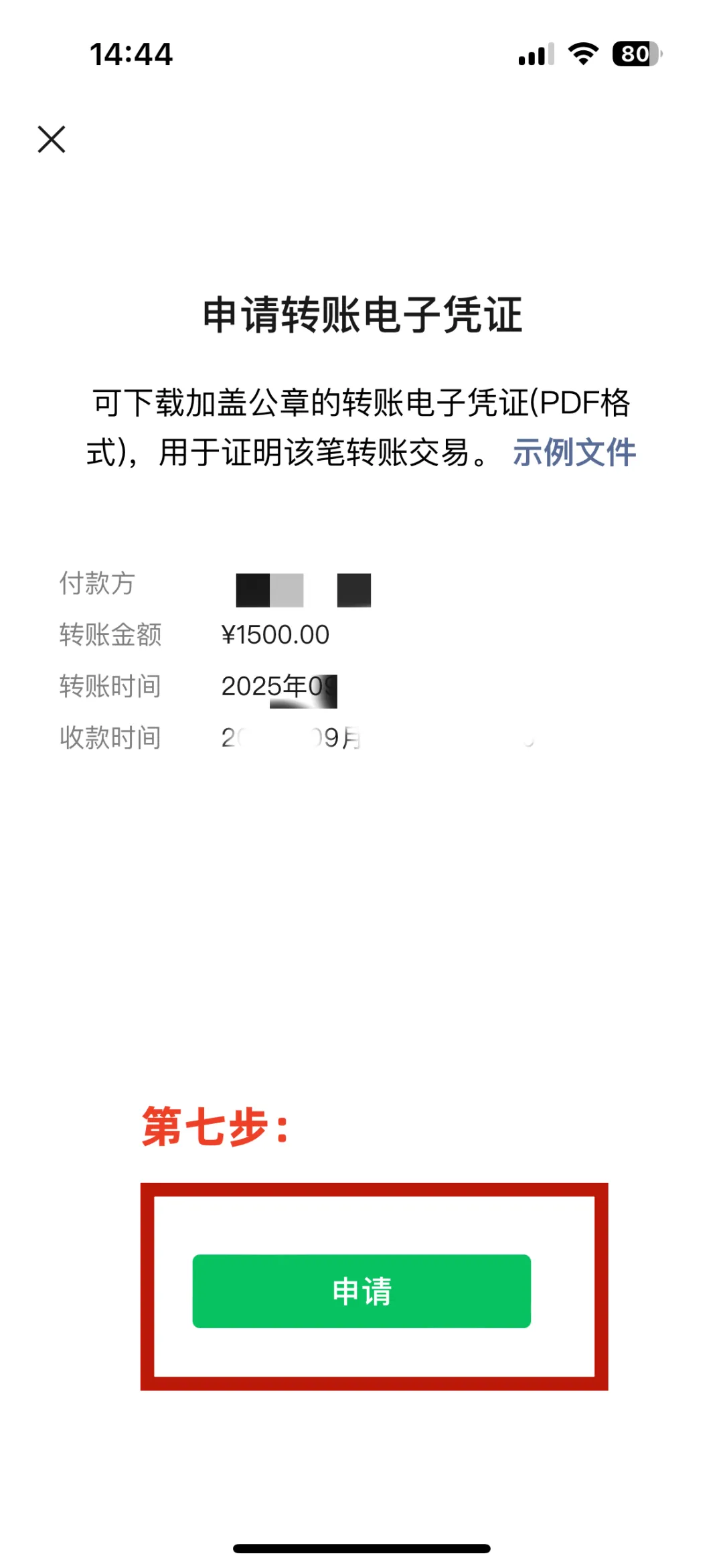 按照上述步骤点击“申请”后,微信后台将会要求确认身份信息,身份信息确认无误后,大约几分钟后,微信后台就可以收到转账凭证了