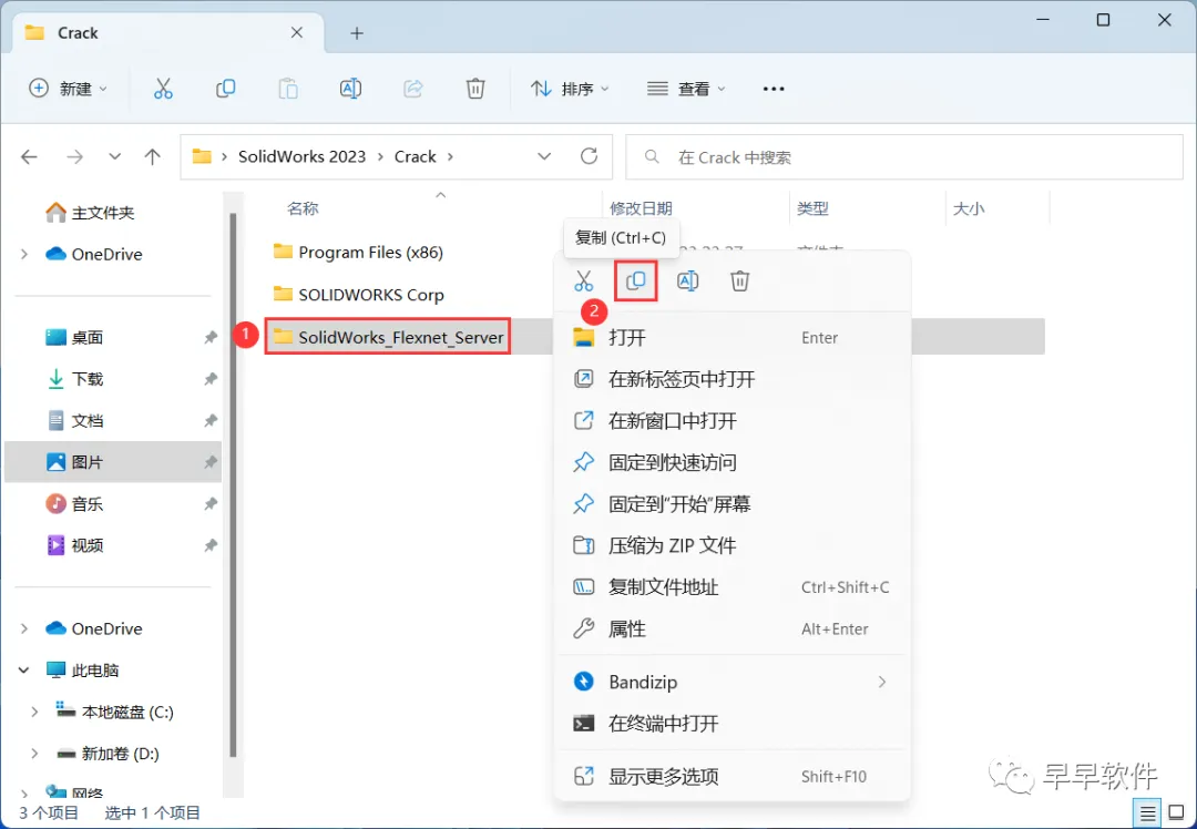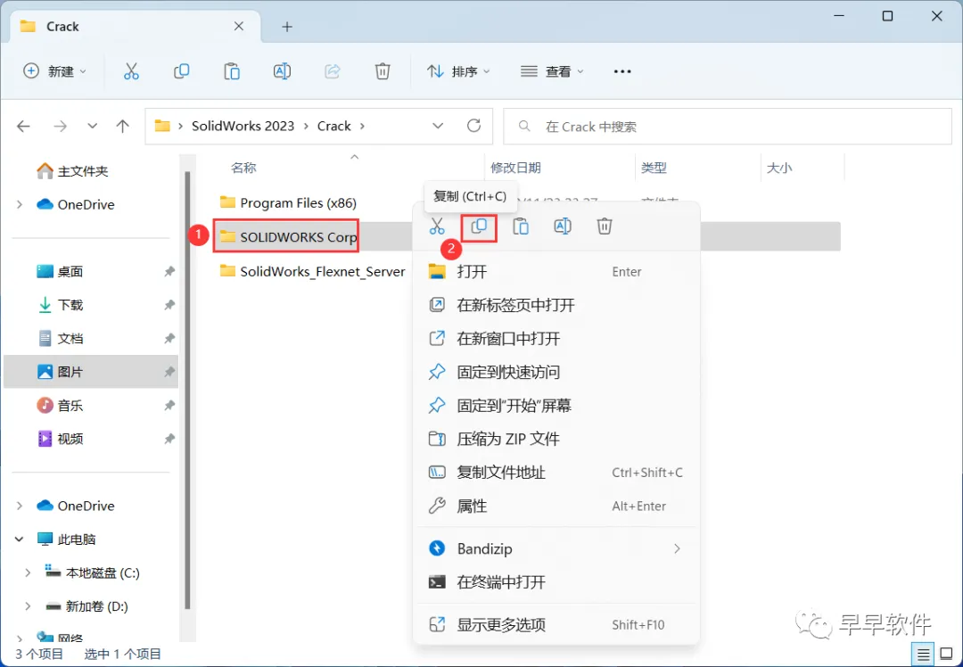 29、回到SolidWorks 2023文件夹下的Crack文件夹,找到【SOLIDWORKS_Corp】文件夹,右键点击【复制按钮】