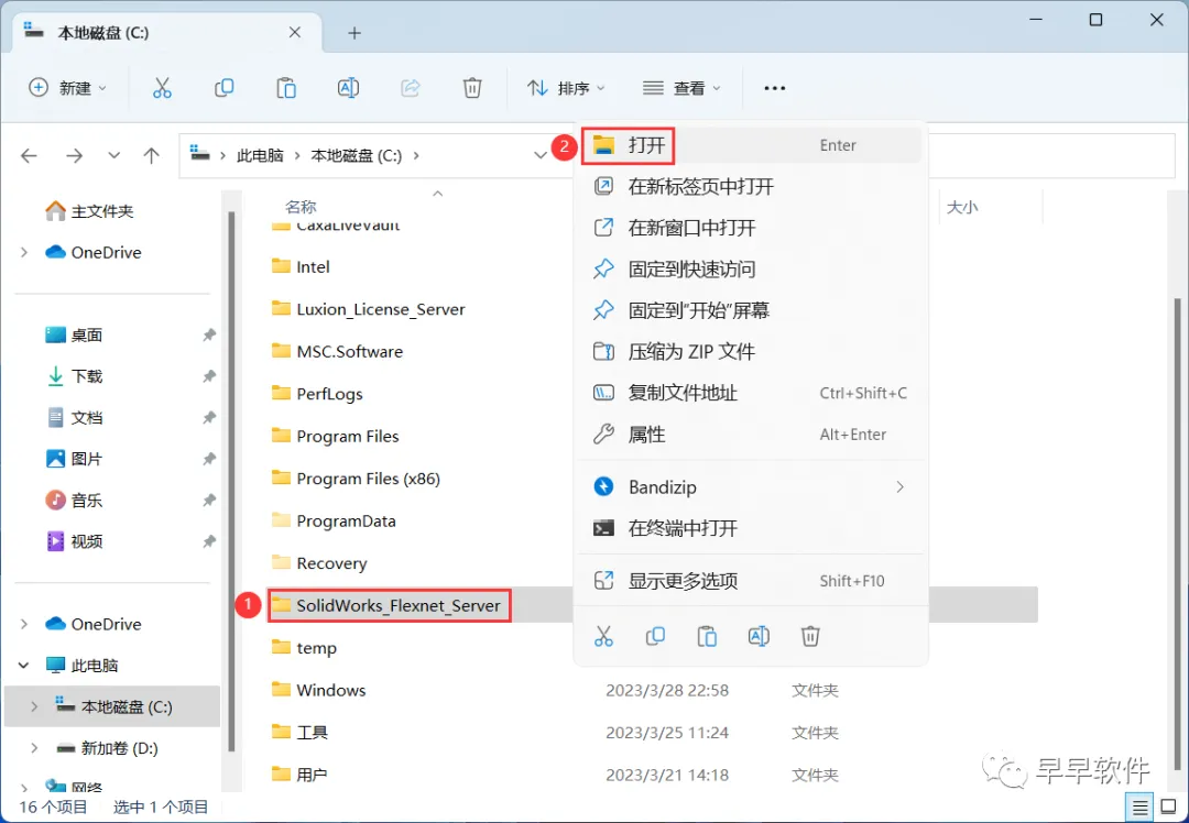 7、找到粘贴的【SolidWorks_Flexnet_Server】文件夹,右键【打开】它