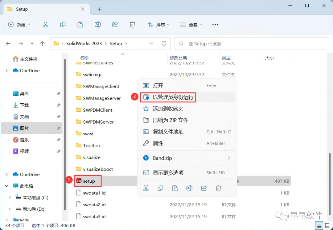16、回到SolidWorks 2023文件夹,找到【Setup】文件夹,右键【打开】它