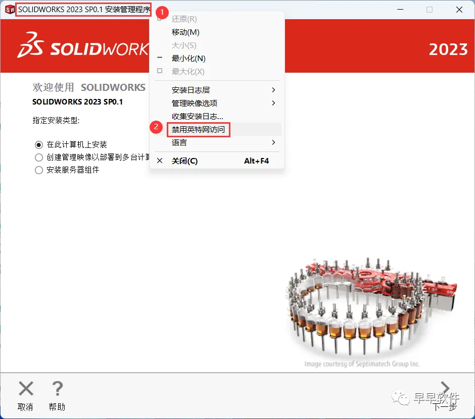 19、右键左上角的【SolidWorks 2023 SP0…】,再点击【禁用英特网访问】