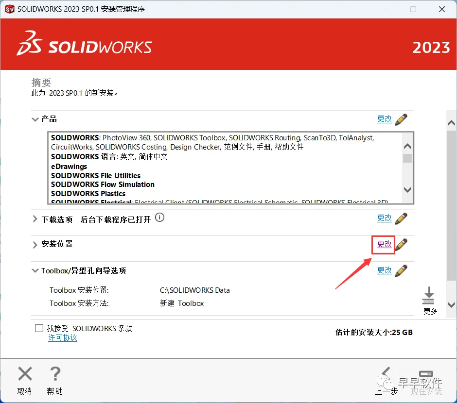 22、点击安装位置处的【更改】