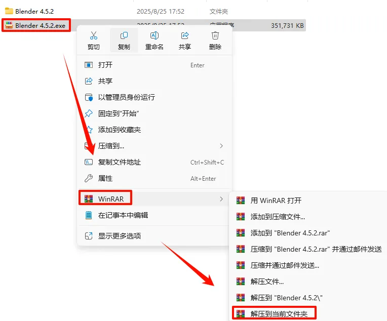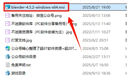 2.打开刚刚解压的文件夹,双击运行“blender-4.5.2-windows-x64.msi”文件