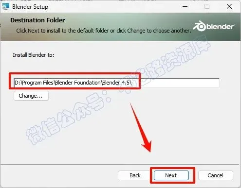 4.选择软件安装路径,建议和教程中的保持一致,本例安装到D盘(将路径地址中的首字符C改为D表示安装到D盘,安装路径不要出现中文),点击“Next“