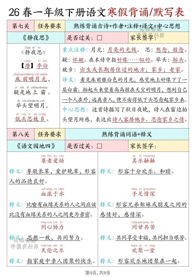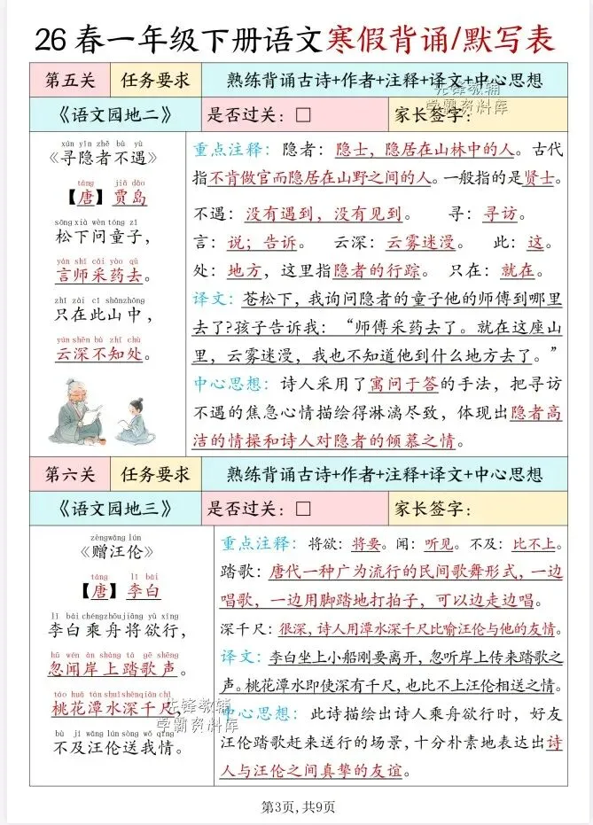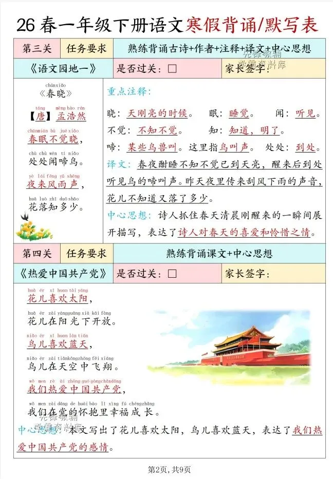 今天给大家整理了26春版一年级下册语文寒假背诵表,转发给朋友或班级群,受益更多人,帮助孩子学习!