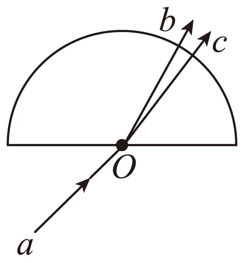 2. 如图所示的平面内,光束a经圆心O射入半圆形玻璃砖,出射光为b、c两束单色光。下列说法正确的是()